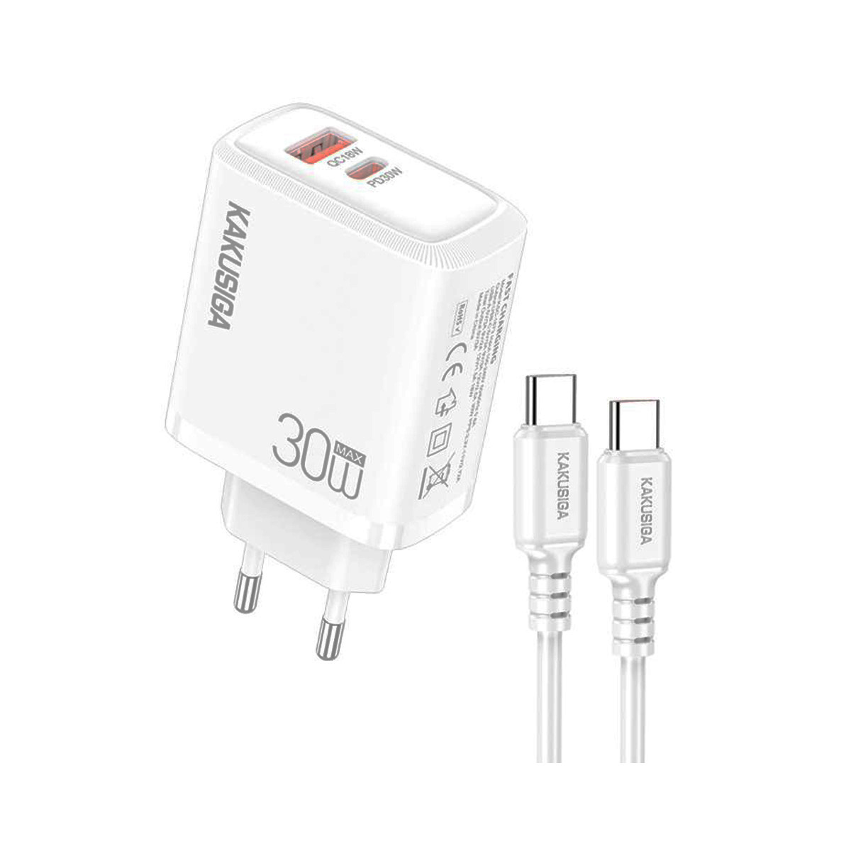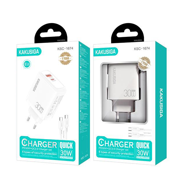 1. Material: Flame-retardant PC2. Output: USB-C: 30W (PD/PPS/QC/FCP/AFC)PPS: 3.3V-11V/2.8AUSB-A: 18W (QC/FCP/AFC)3. Total output power: 15W4. Includes a 1m USB-C to iPhone fast charging cable.