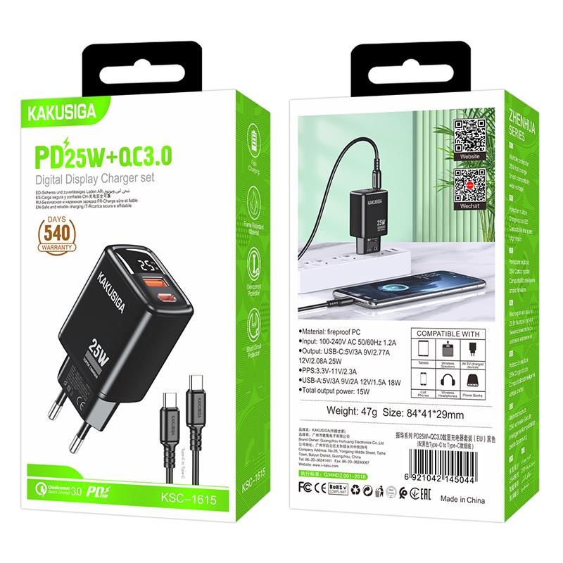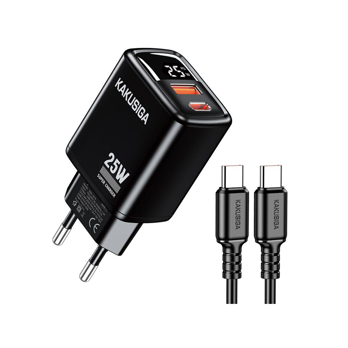 KSC-1615/BLACK ΜΑΥΡΟΣ ΦΟΡΤΙΣΤΗΣ USB 25W ΜΕ ΚΑΛΩΔΙΟ TYPEC (με ένδειξη LED) fast charging
