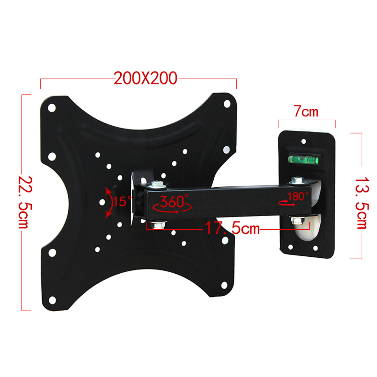 ΓΙΑ ΤΗΛΕΟΡΑΣΕΙΣ : 14’’ - 42’’ ΜΕΓΙΣΤΟ ΦΟΡΤΙΟ : 36kgs ΑΠΟΣΤΑΣΗ ΑΠΟ ΤΟΝ ΤΟΙΧΟ : 60-200mm ΚΛΙΣΗ : +-20 VESA : 200x200 ΧΡΩΜΑ : ΜΑΥΡΗ