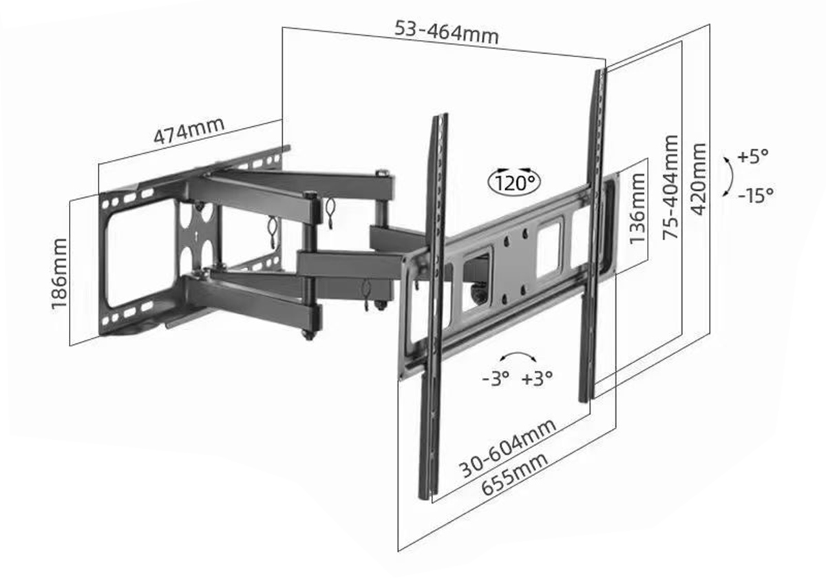 ΓΙΑ ΤΗΛΕΟΡΑΣΕΙΣ : 37’’ - 80’’ ΜΕΓΙΣΤΟ ΦΟΡΤΙΟ : 45kgs ΑΠΟΣΤΑΣΗ ΑΠΟ ΤΟΝ ΤΟΙΧΟ : 67-470mm ΚΛΙΣΗ : +-10 VESA : 600x400 ΧΡΩΜΑ : ΜΑΥΡΗ