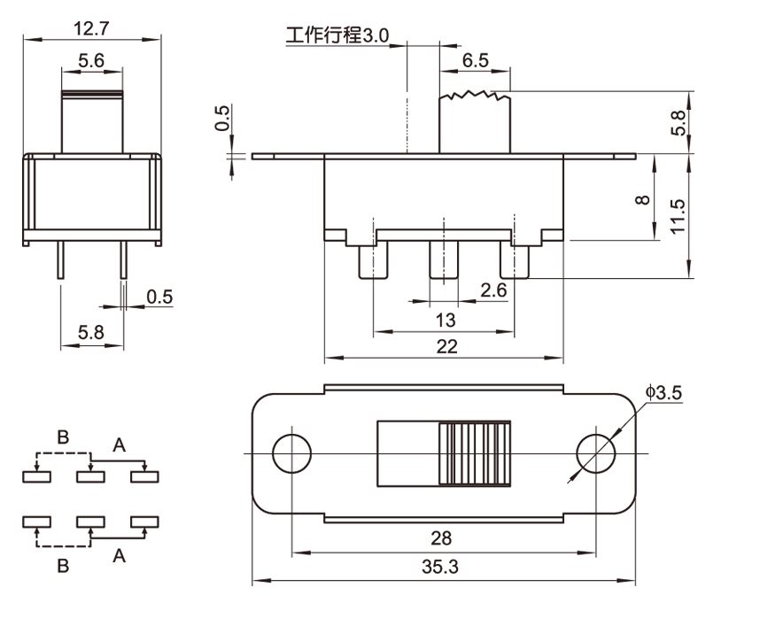 SS-23F08 Διακόπτης συρόμενος