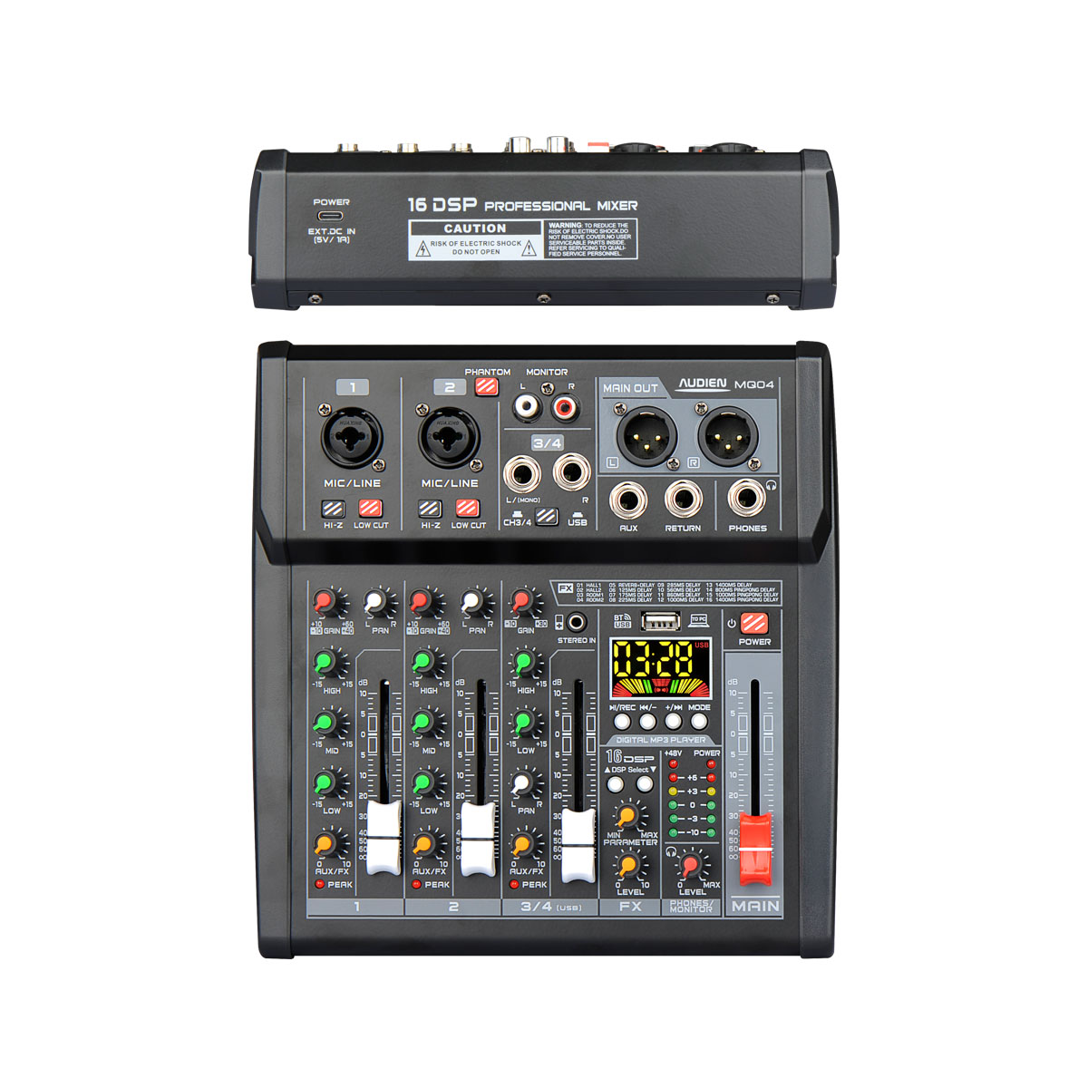 * 2 x κανάλια (MIC/LINE) + 1x STEREO (6.35jack) + 1x MP3